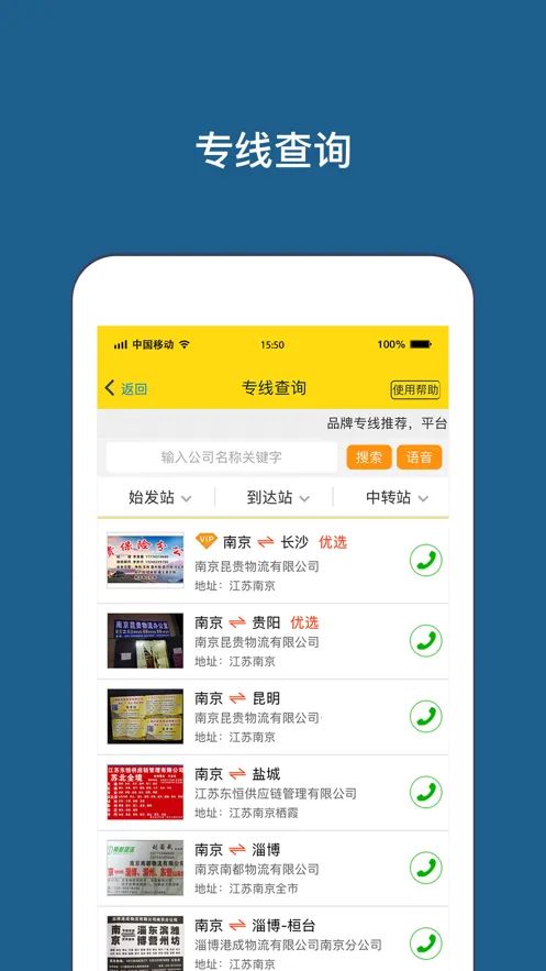 3. 该平台为司机和货主提供手机 APP 和 PC 网站,方便快速找货找车找专线,且线路车辆查询优质。