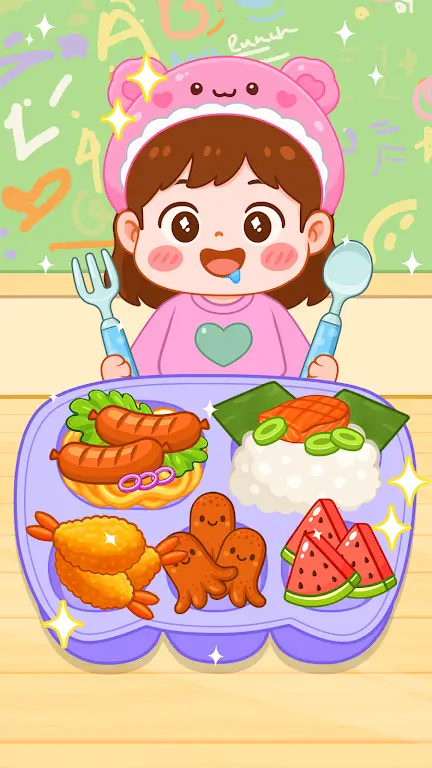 2、游戏提供丰富午餐盒制作选项,准备鸡块、西瓜、章鱼香肠等,成为学校午餐大师,享受视觉与味觉双重享受。