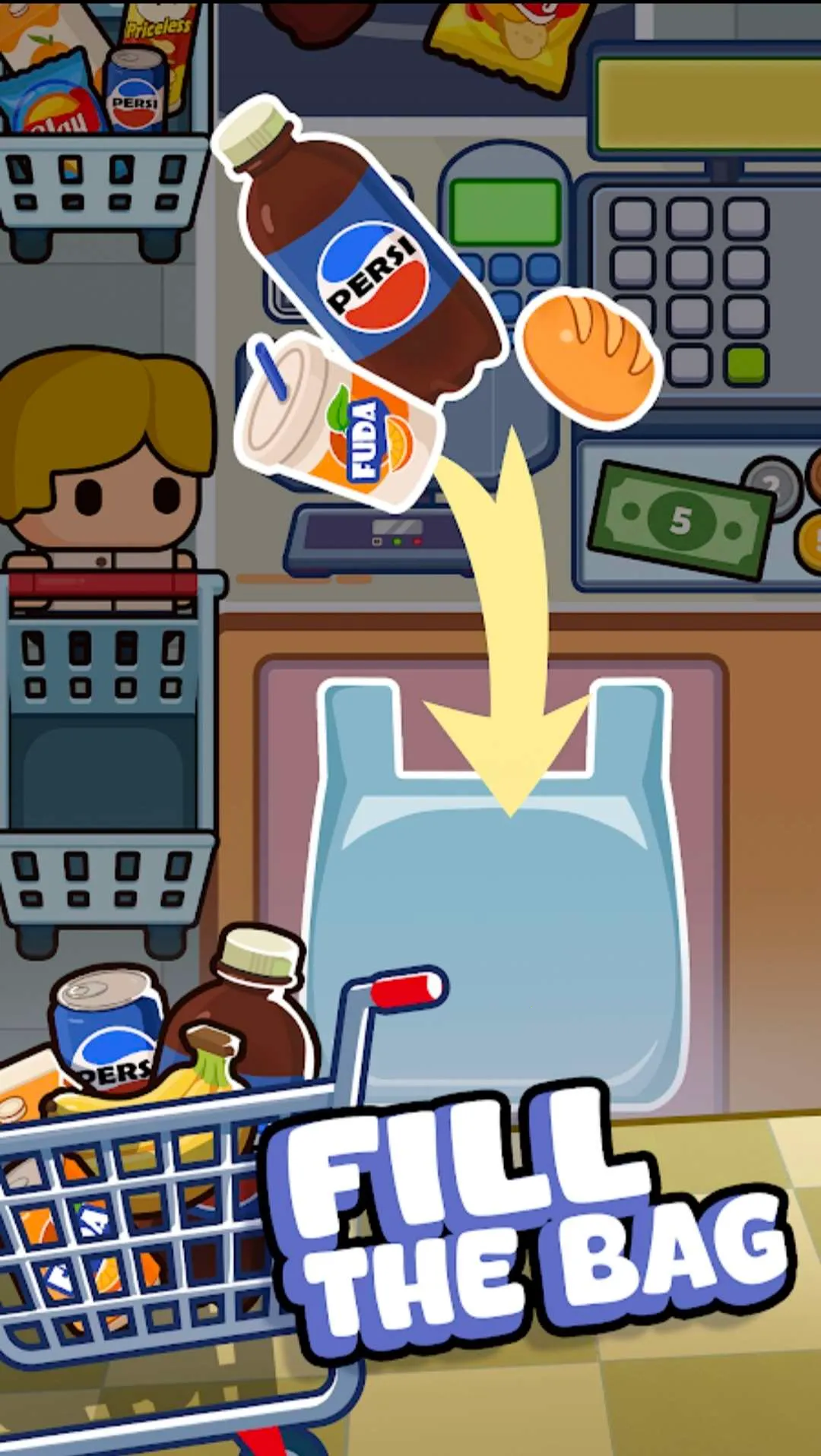 4. 不仅能体验收银员工作,还能像超市管理者一样合理安排货架、制定营销策略,随着业务发展解锁更多产品,扩展店铺规模,感受全方位的超市经营乐趣。