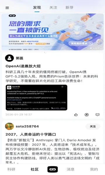 打开软件,完成登录注册,然后就可以看到首页提供了超多文章动态。