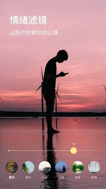 4. 能自动识别图片内容一键修图,还有情绪文字、百变模板,一键P图等特色玩法,可参与各种图片话题,分享得意之作。
