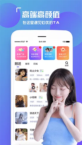 想找身边有趣的人?陌颜聊天交友软件就是你的最佳选择。它专为单身男女打造,帮你快速摆脱孤单。在这里,你可以查看同城附近的人,通过真人视频聊天,让交友更真实。一键速配功能让你秒见陌生人,同城聊天支持点赞快速开启话题。视频通话让你既听其声又见其人,沟通更高效。还能展示你的语音签名,记录从相识到相恋的点滴成长。加入脱单群,在广场随便聊聊,发现更多有趣灵魂。平台主打愉快社交,支持举报不良信息,守护你的交友安全。快来下载体验,遇见那个对的人,开启你的甜蜜生活吧。