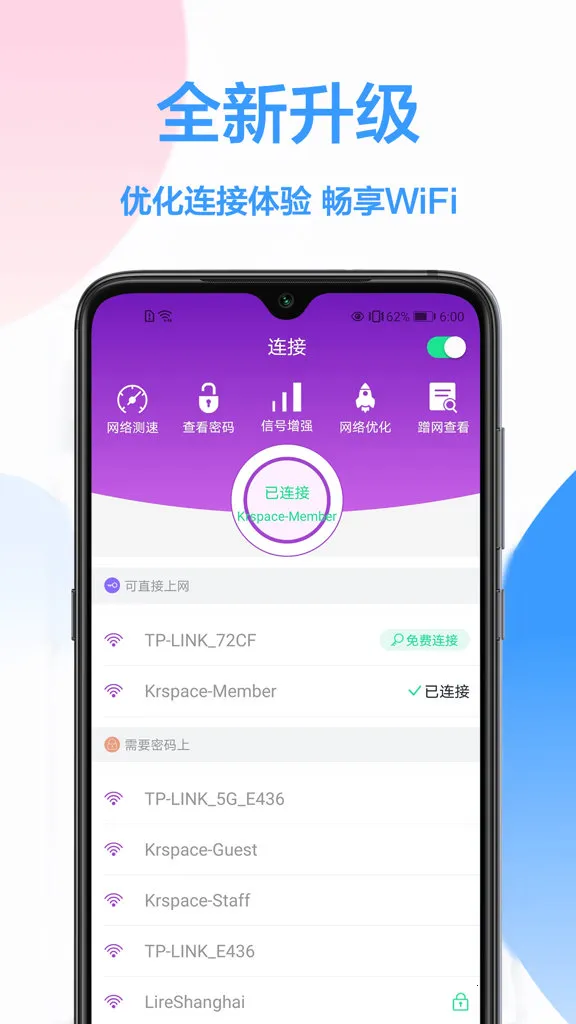 3. 可一键查询附近共享热点,并自动安全连接,使用起来非常便捷。