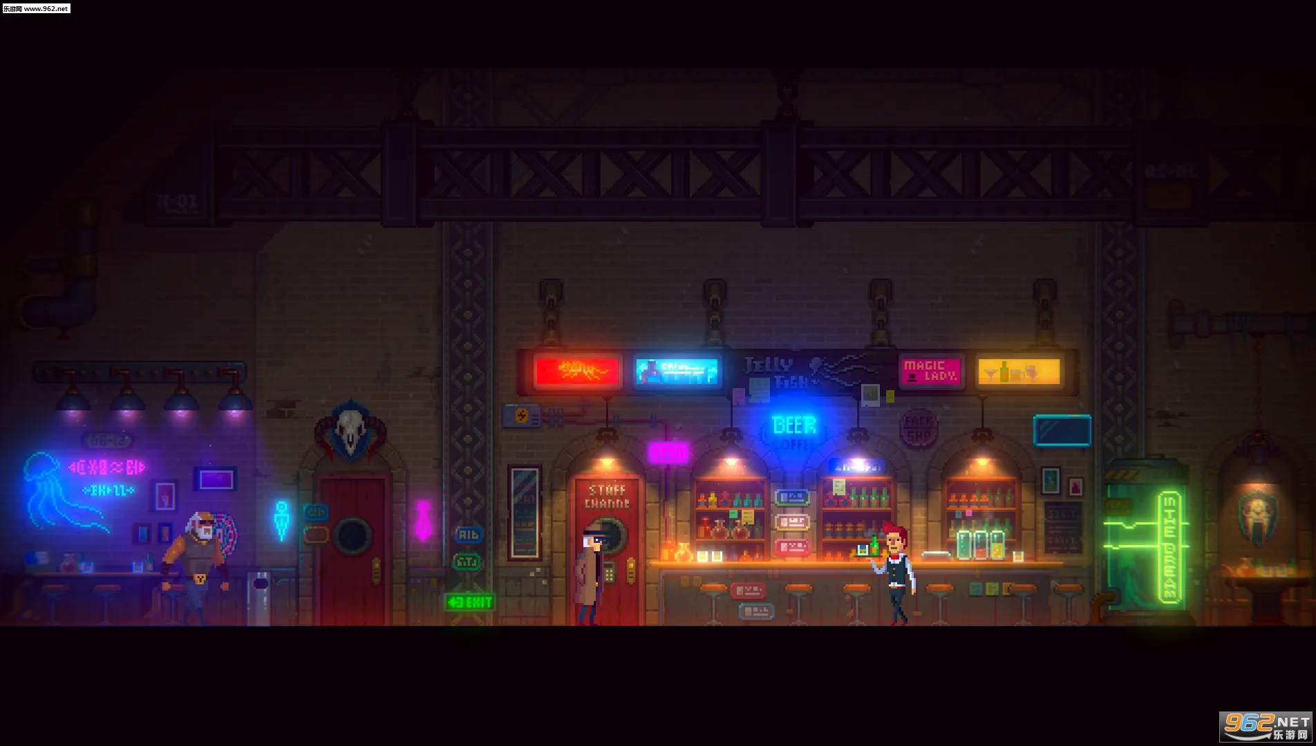 2、游戏采用匠人精神的手工像素风格,复古像素画风配合精美的特效及灯光表现,带来难忘的视觉体验,搭配精心打磨的音乐音效,沉浸感十足。