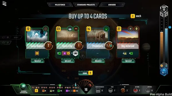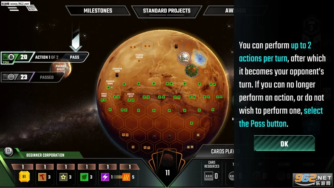 3. 游戏背景设定独特,是火星开发委员会委托各家地球托拉斯企业前往火星进行改造,目的是提升火星的含氧量、水环境和温度,让人类能在火星生存。每个资源都有单独产出和作用,是多资源系统游戏,且公司数量众多,风格各异,深度大幅提升,有多种发展流派。