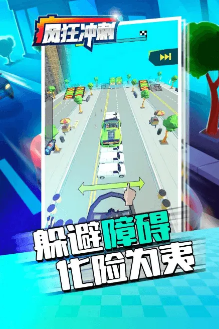 疯狂冲刺是一款卡通风格赛车竞速手游,以现代城市为背景。玩家滑动屏幕控制赛车,躲避障碍、展特技,与NPC竞速,获胜得金币升级配件、解锁赛车,多样关卡等你挑战。