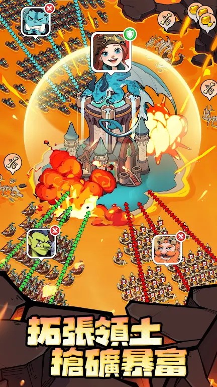 4. 要面对熔岩巨兽的挑战,需召集盟友组队战斗,利用一切策划战术,在争夺宝藏和资源战斗中成为富豪。