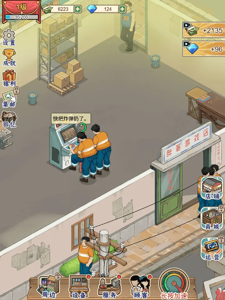 1. 这款游戏带你重回90年代老城区巷弄里的游戏店,化身胖哥开启经营之旅。从黎明时的忙碌准备,到形形色色客人的到来,要时刻留意运营细节,体验感十足。