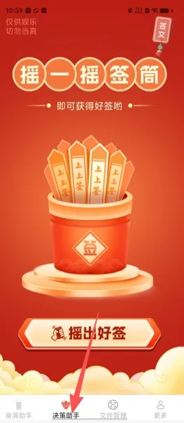 3. 摇签功能有趣味性。在摇一摇签筒中可摇出好签,签文内容丰富,覆盖多场景,兼顾实用性与趣味性。
