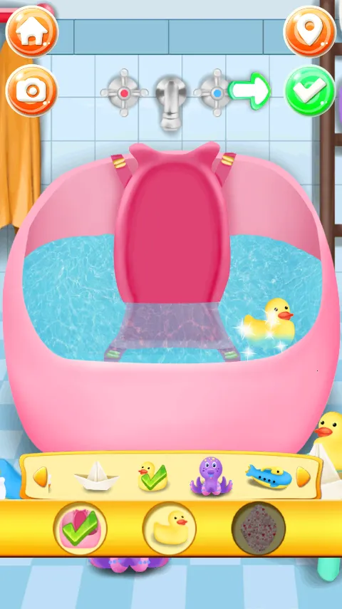 2、随后你就会进入照顾宝宝的任务当中,首先要做的是点击第一个关卡帮宝宝洗澡。