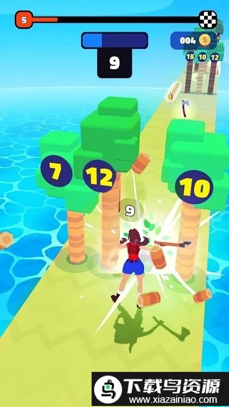 1. 游戏玩法轻松有趣,扮演伐木工在赛道上奔跑,砍断树木障碍,操作简单易上手。