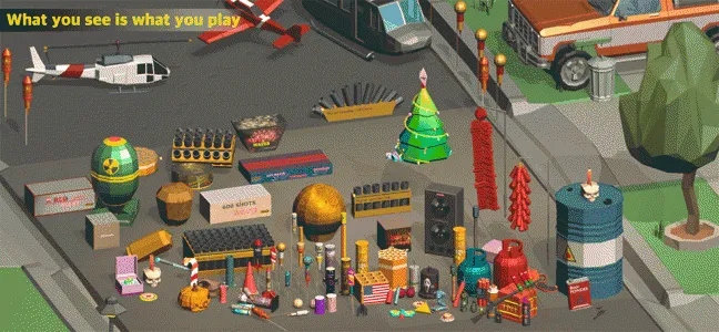3. 开启FPS第一人称模式,穿梭于小镇街头巷尾,在邻居附近点燃烟花,近距离体验爆炸的刺激快感。