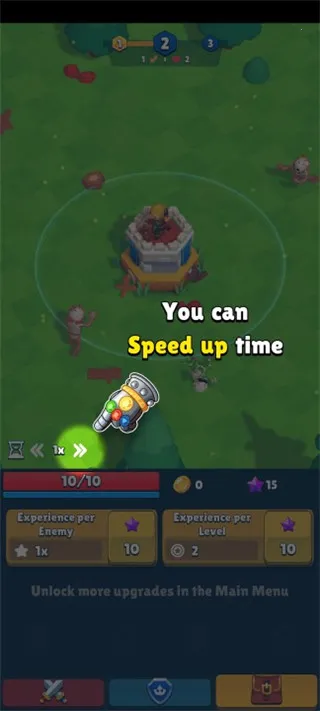 4. 能升级资源数量,击败怪物获取更多资源,还可增加游戏倍速,挑战强大boss保卫王国。