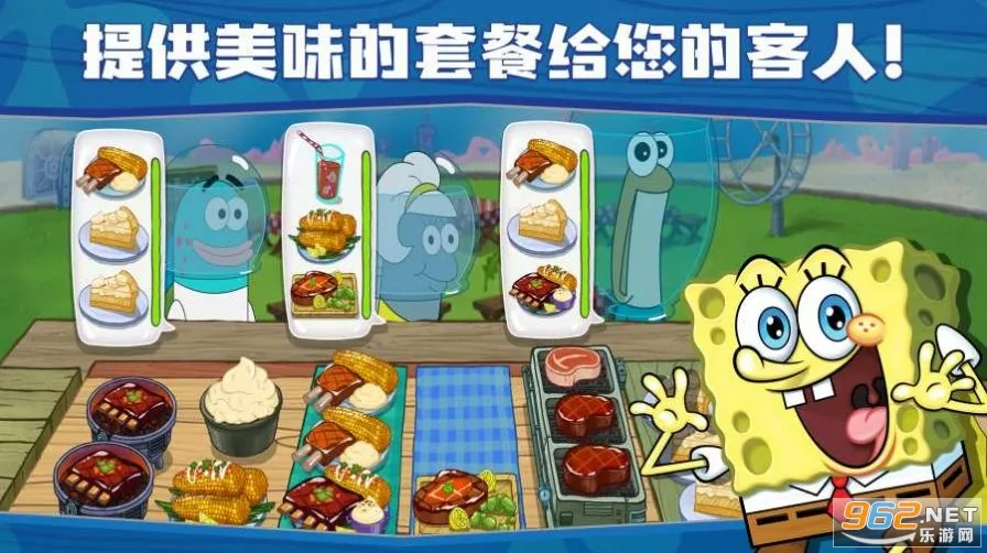 2. 采用经典模拟经营玩法,融入大量独家剧情,可参观海绵宝宝地标并制作美味料理,数百道美术关卡助你掌握厨艺。