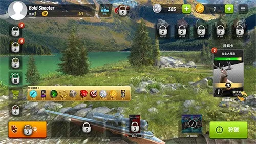 1. **操作简便易上手**:玩家点击下方“狩猎”,左右滑动屏幕找猎物,瞄准后按扳机即可射击,打中要害还会根据精准度打分,操作流程清晰明了,极易上手。