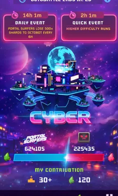 3、能收集金币、碎片、磁铁等道具,传送门不时出现,进入高速赛博维度,还有全球实时事件,玩法丰富多样。