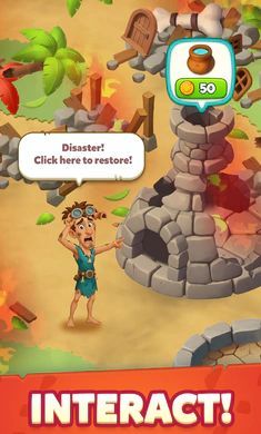 1. 踏入生机勃勃的史前世界,以物品融合为关键,匹配相同物品创造奇特石器时代工具,每次融合解锁新资源升级与生产链,助力村庄繁荣发展。