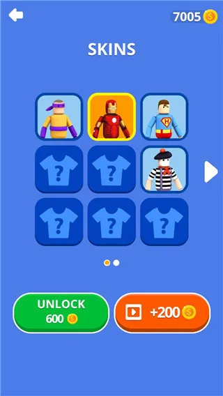 2. 采用简洁清爽的3D画面与布娃娃物理机制,提供多种武器与皮肤外观可供解锁搭配。
