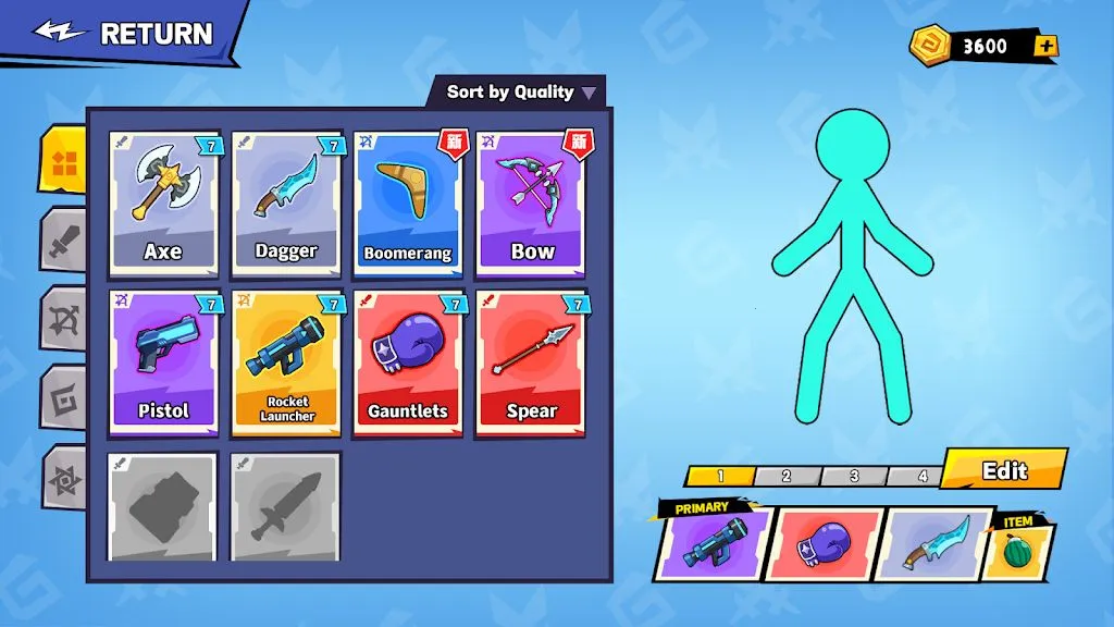 2. 拥有海量武器库,从传统刀剑到科幻枪械一应俱全,可解锁升级,找到适合自己战斗风格的武器。还有缤纷多彩的火柴人英雄和皮肤供选择,能自定义战士。