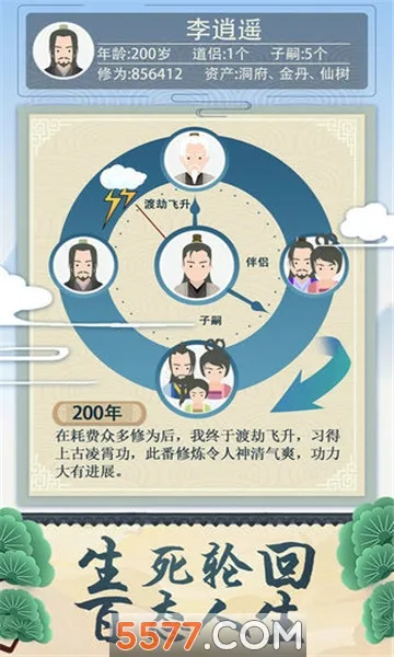 4. 轮回转世系统在角色寿命终结时激活,可选择带着部分修为转世重修。