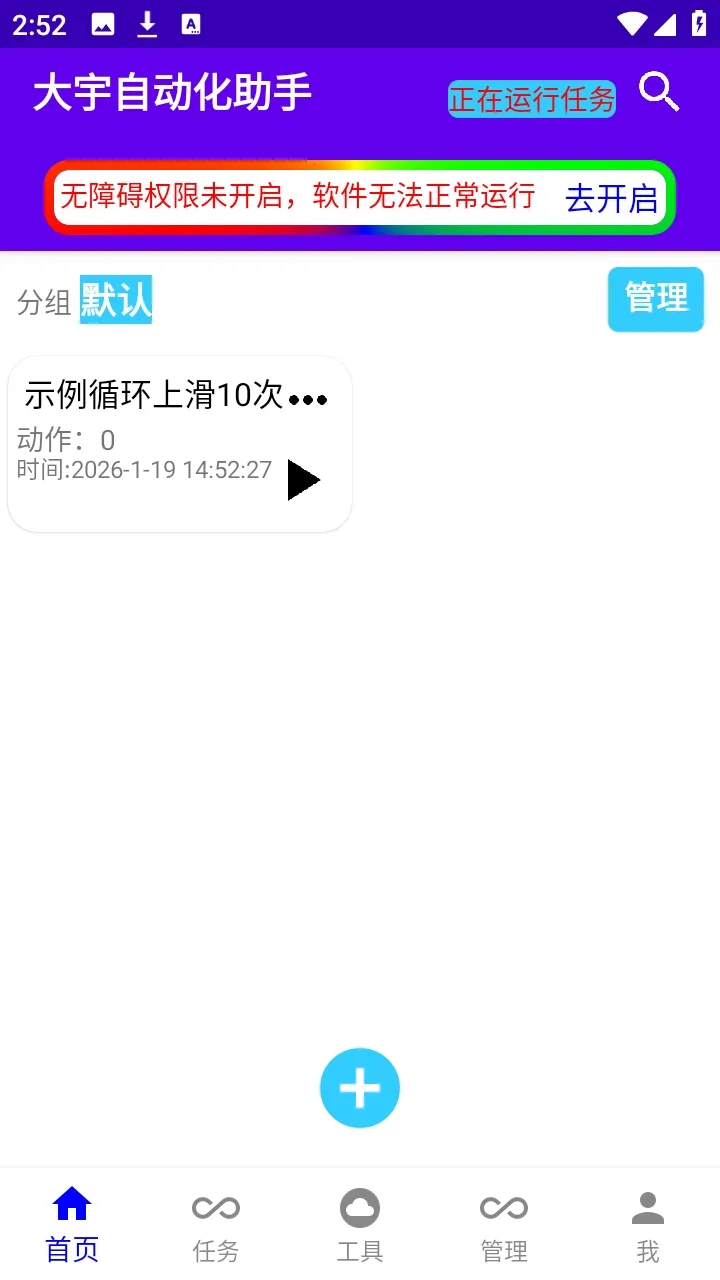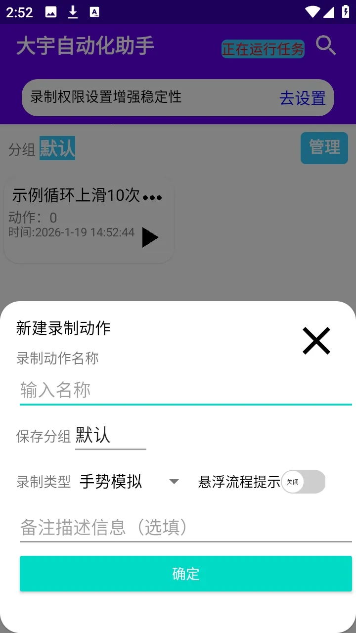 大宇自动化助手2026官方最新版本,可录制屏幕操作流程,设置触发条件自动执行任务,无需Root权限。具有流程清晰、智能触发等特性,涵盖多种场景,还具备手势录制等亮点,介绍了开启任务列表及使用方法。