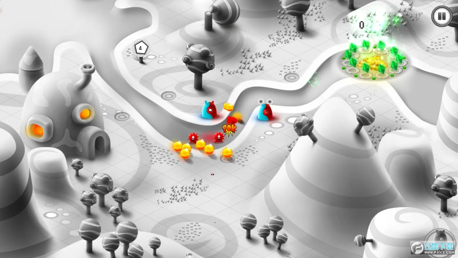 3. 首创同色相克塔防机制,防御塔与敌人的颜色匹配直接影响伤害效率,鼓励玩家动态调整布局,提升策略决策权重。