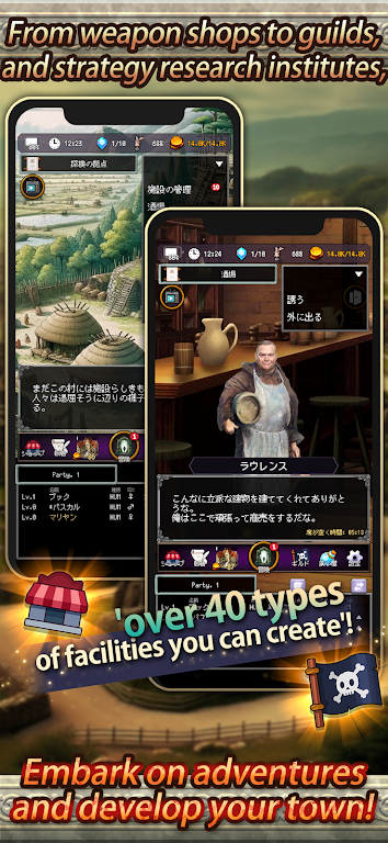 2、酒馆与装备店构建冒险起点,支持离线运行让旅程随时继续。