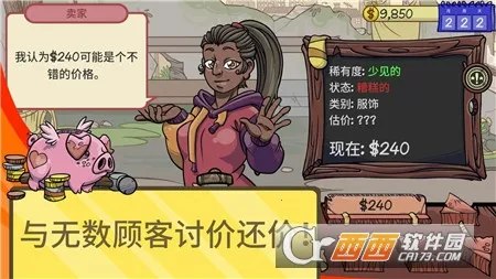 它能满足你当老板的梦想,体验经营店铺的乐趣。游戏里有超先进的谈判引擎,无数商品买卖,还有大量假货需辨别利用。要和性格外貌各异的客户讨价还价,雇佣员工帮忙,还能参加拍卖。