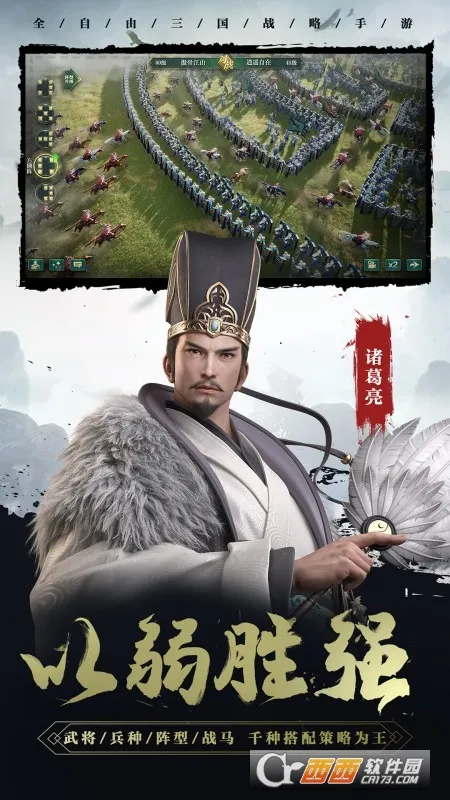3. 游戏策略丰富,有经典九宫格单局对战、百位武将及特色技能、五大兵种十大阵型,全自由搭配。