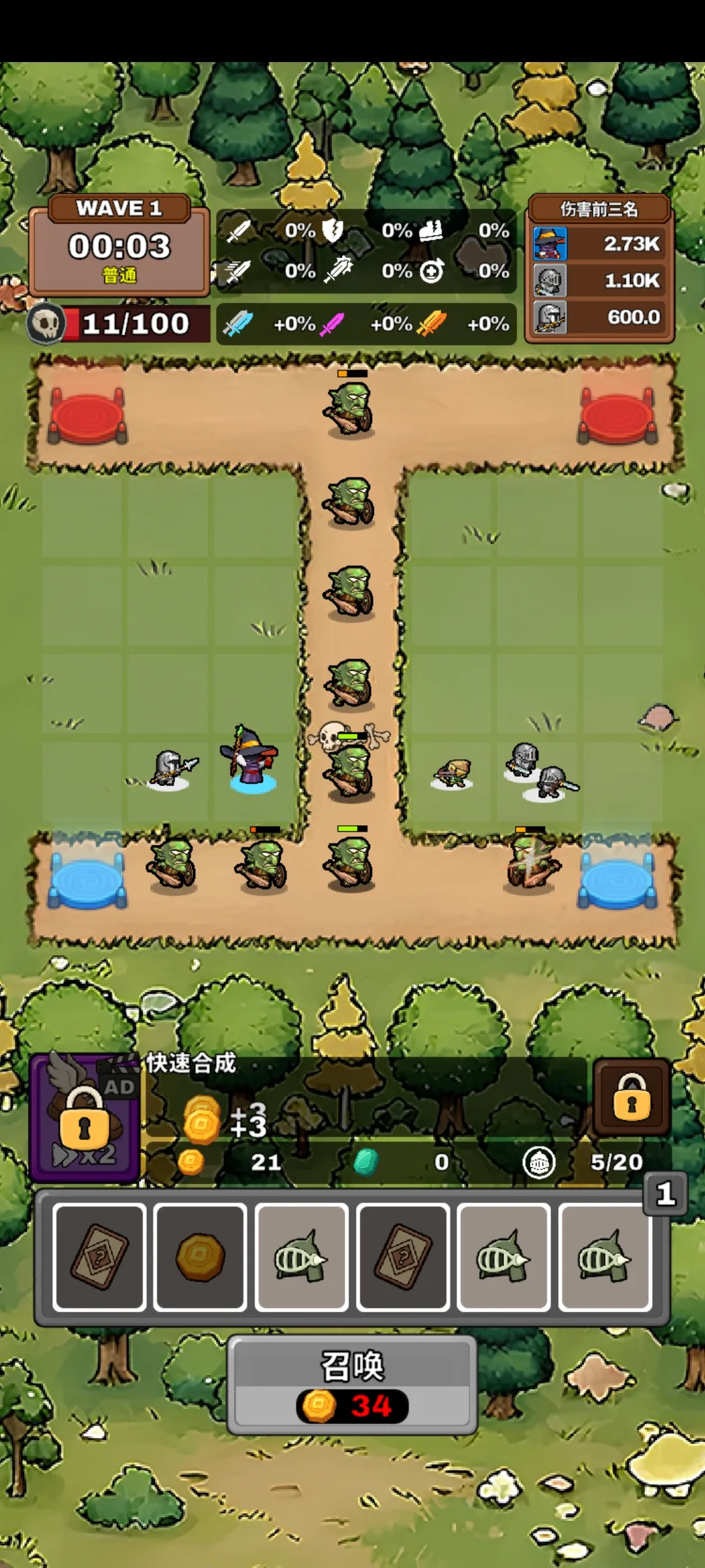 3. 游戏包含塔防策略和卡牌游戏等多种元素,超过10种敌人出现,宏大的战场效果,每场战斗都充满挑战与不确定性。