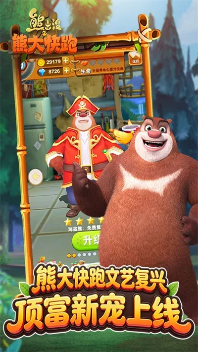 熊出没之熊大快跑是根据热门动画改编的正版跑酷手游。以动作跑酷为主,有海量角色、丰富关卡与多样陷阱。玩法包括无尽模式、竞技对战等,还有宠物系统、换装系统,操作简单易上手。