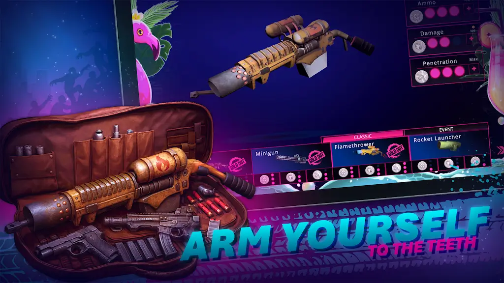 2、极致武器组合与全新视觉体验,多样化武器提供丰富战斗策略,版本1.8更新后车辆武器全面重塑,带来更细腻3D模型和视觉效果提升。新武器界面支持自由旋转展示,方便玩家对比选择最佳火力组合,有效清理僵尸并在竞速中占得先机。