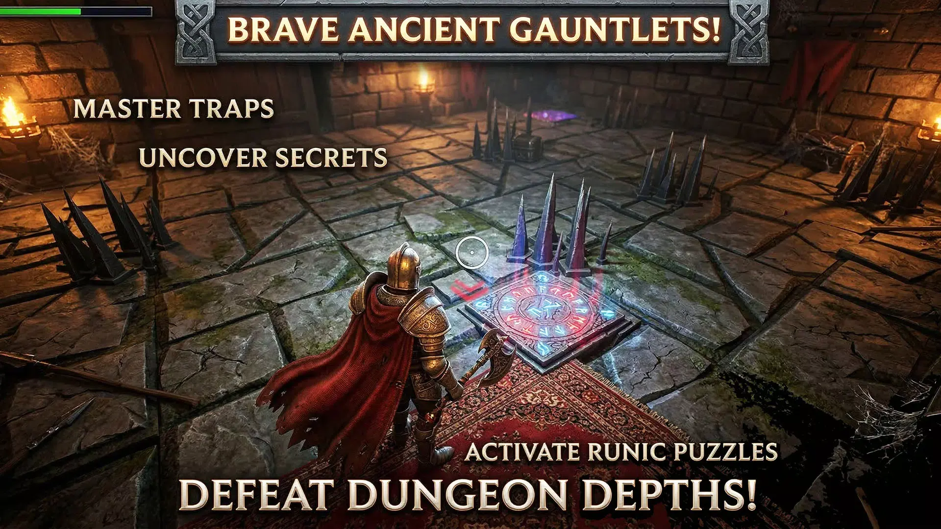 3、探索奇幻地牢:穿越10个精心打造的地牢房间,面对智能AI追捕,消灭怪物敌人,揭开神秘传说。