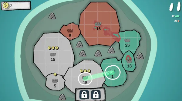 1. 经典占地玩法,趣味性与策略性并存,玩家操控士兵占领领地,成为地区唯一势力,还能跳点占领,占领地盘多收益大。