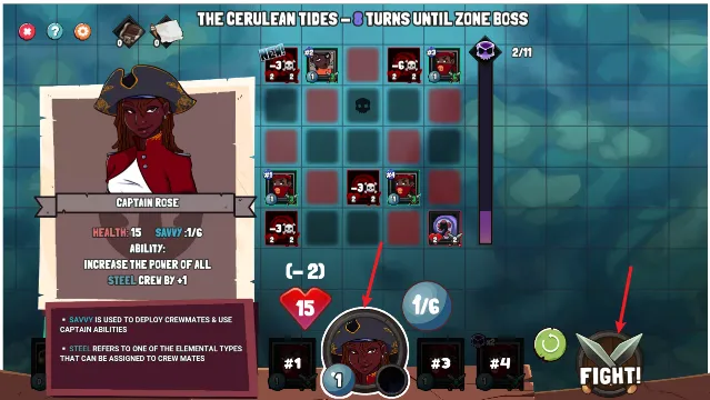 2、布置好之后,点击中间的船长还能释放技能,随后可以开始战斗。