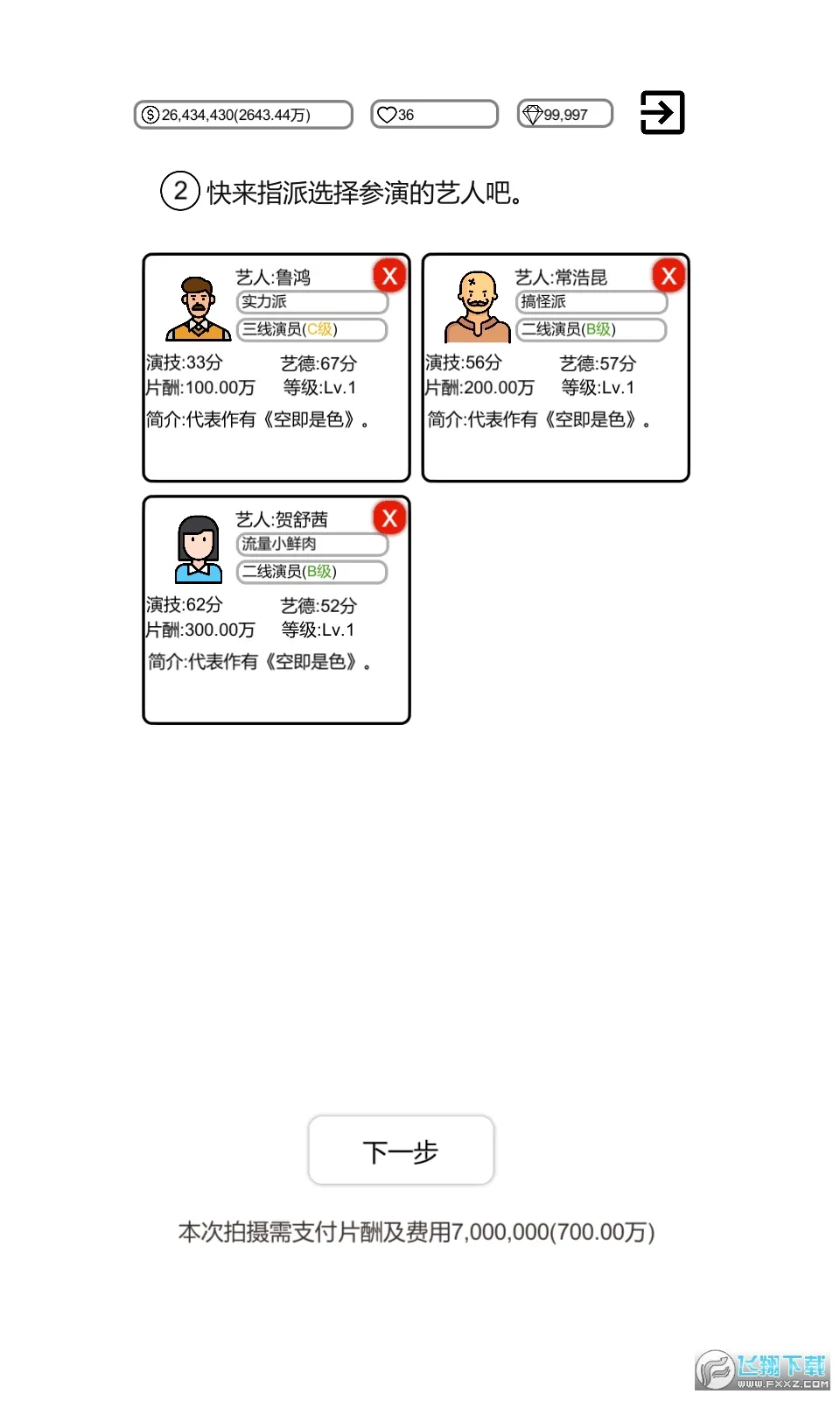 2、可对艺人进行定向培养,有2000多个不同等级的艺人供选择,努力培养出超级巨星,助力公司发展。