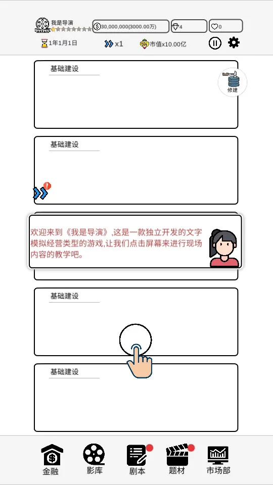 《我是导演 2025 最新版本》是文字模拟经营手游。玩家从无名小导演起步,能自由创作剧本、选演员拍摄,有多种题材剧本与海量艺人,还有随机事件,努力成就票房,打造商业帝国 。