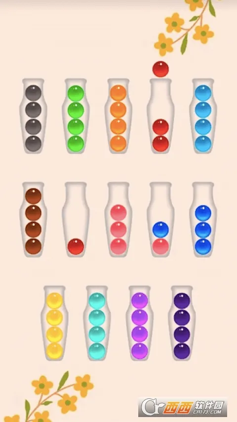 1、在动脑达人(益智排序游戏)中,能感受到独特操作带来的收纳激情,通过拖动试管完成小球分类,简单却充满乐趣。