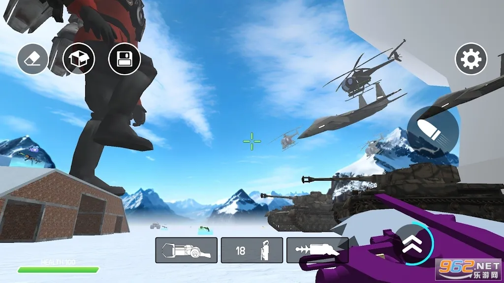 3、战场之外是创意天堂,可在基于物理的环境中自由建造,从冰城堡到雪棚,发挥无限创造力。