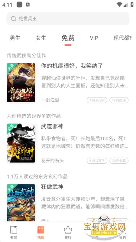 1. 海量小说免费阅读,全站上万本小说皆正版、精品且免费,彻底告别书荒。