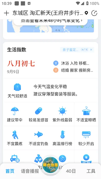 提供8大生活指数,如今天适合穿什么、会不会中暑、是否适合外出运动等,全面服务生活,让用户决策不再纠结。