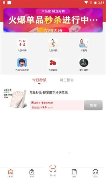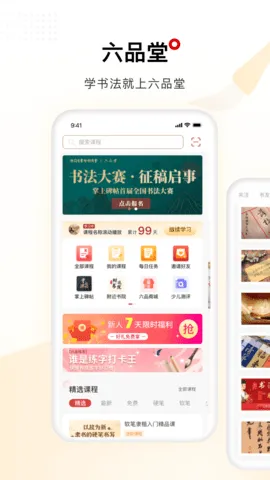 六品堂 2025 官方正版是集书法产品销售与互联网教育于一体的平台。有智能分类、特价包邮商品,实时更新。提供丰富课程,涵盖多种教学模式,还有完善售后及实惠团购,助您轻松学书法、购好物。