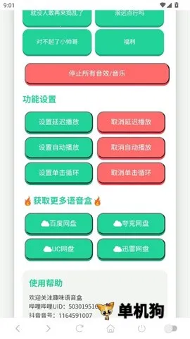 软件功能超棒,有优质语音素材,像主播虎哥的经典段子等应有尽有,还定时更新保持新鲜感。它按不同主题风格细致分类,找音效省时省力。软件亮点也很多,能让用户随心混搭创作搞笑作品;音效处理精心,音质清晰流畅;悬浮窗播放功能强大,使用其他应用时也能继续播放。要是播放有问题,比如没声音、卡顿等,按常见问题里的方法处理就行。总之,它能满足你对搞笑音效的各种需求,带来无尽欢乐。