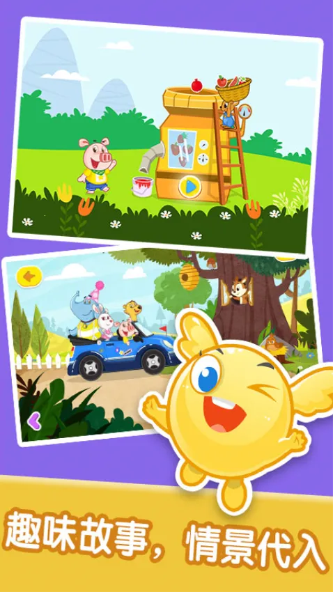 2. 趣味故事:精彩有趣的故事内容,多种故事类型,可让每个小朋友都能愉快的体验。