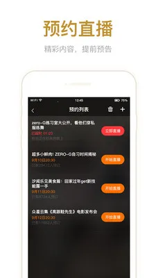 3. 具备特色预告功能,可提前发布直播预告,错过直播也能看精彩回放。