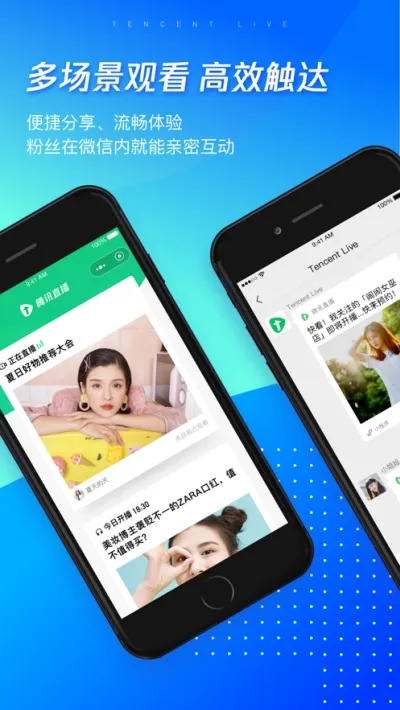 腾讯直播是腾讯打造的手机直播平台,支持语音视频推流直播。有美颜等功能,720P 高清,多渠道可看。白名单机制,申请或受邀可登录,能发预告、回看,还有多样互动及丰富直播内容。