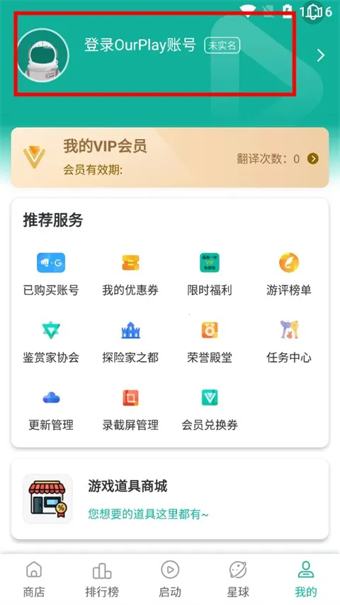 1、进入OurPlay主界面后,点击“我的”,进行登录;