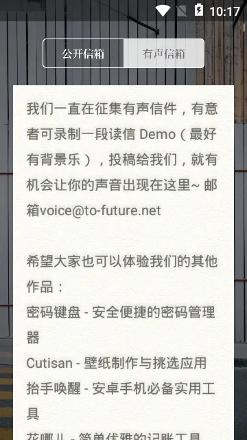 3、公开信箱有特色:每封信都包含故事,能看到别人的酸甜苦辣,还有电台主持人和热心用户录制的有声信件分享。