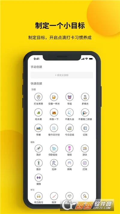 1、个性化定制:可自由添加习惯目标,还能自定义习惯强度、名称、分类及图标等,满足多样需求。