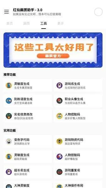 1、红仙画质助手安卓版手机版适配所有手机型号,能轻松解决各种画质问题,让玩家一键解锁最高清画质帧数,不同机型都能找到适合自己的画质方案。